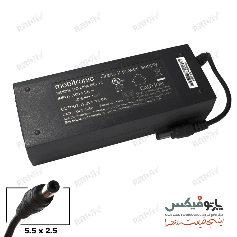 مشخصات آداپتور مانیتور 12 ولت 5 آمپر کانکتور 5.5X2.5