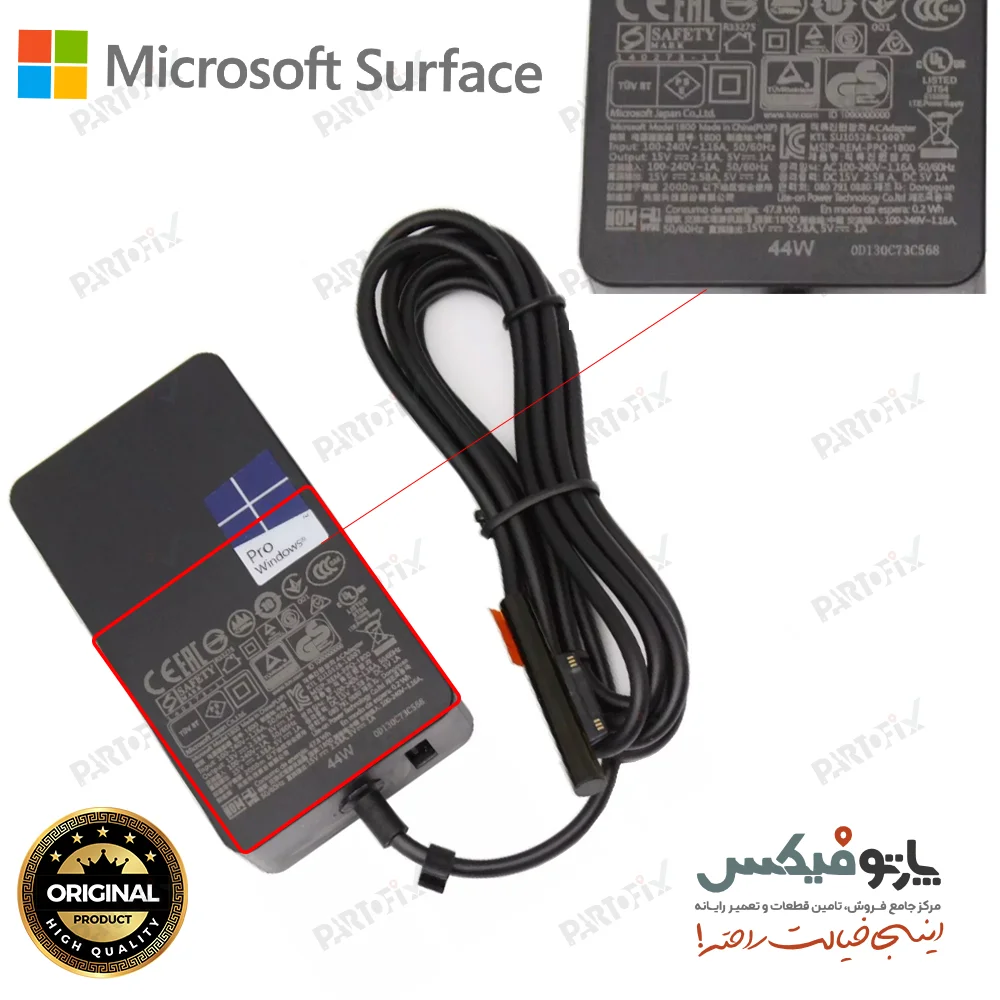مشخصات شارژر اورجینال لپ تاپ مایکروسافت سرفیس 15 ولت 2.58 آمپر
